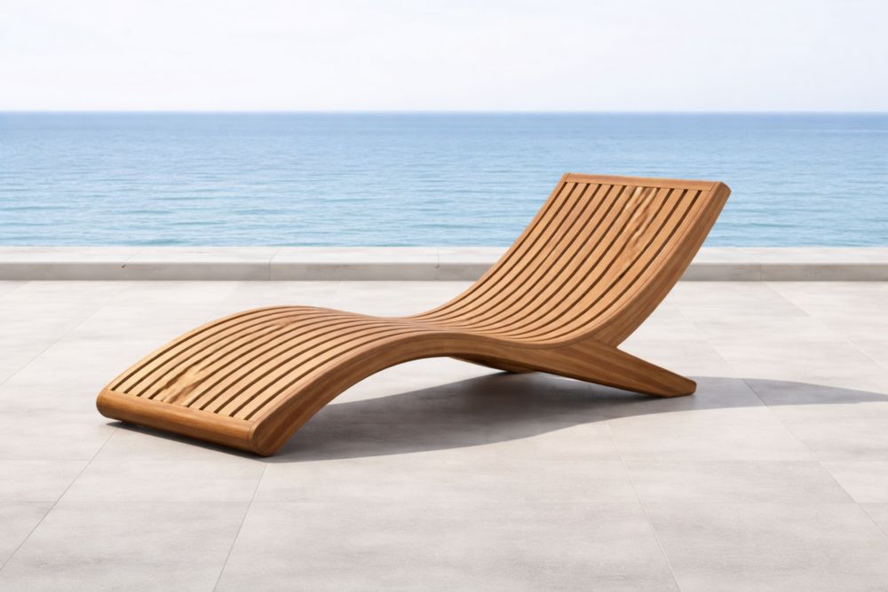 Chaise Longue Extérieure en Bois Forme Vague