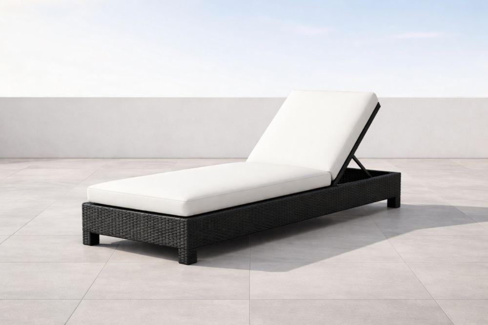 Chaise Longue Extérieure en Résine Tressée Noir avec Coussin Blanc Réglable